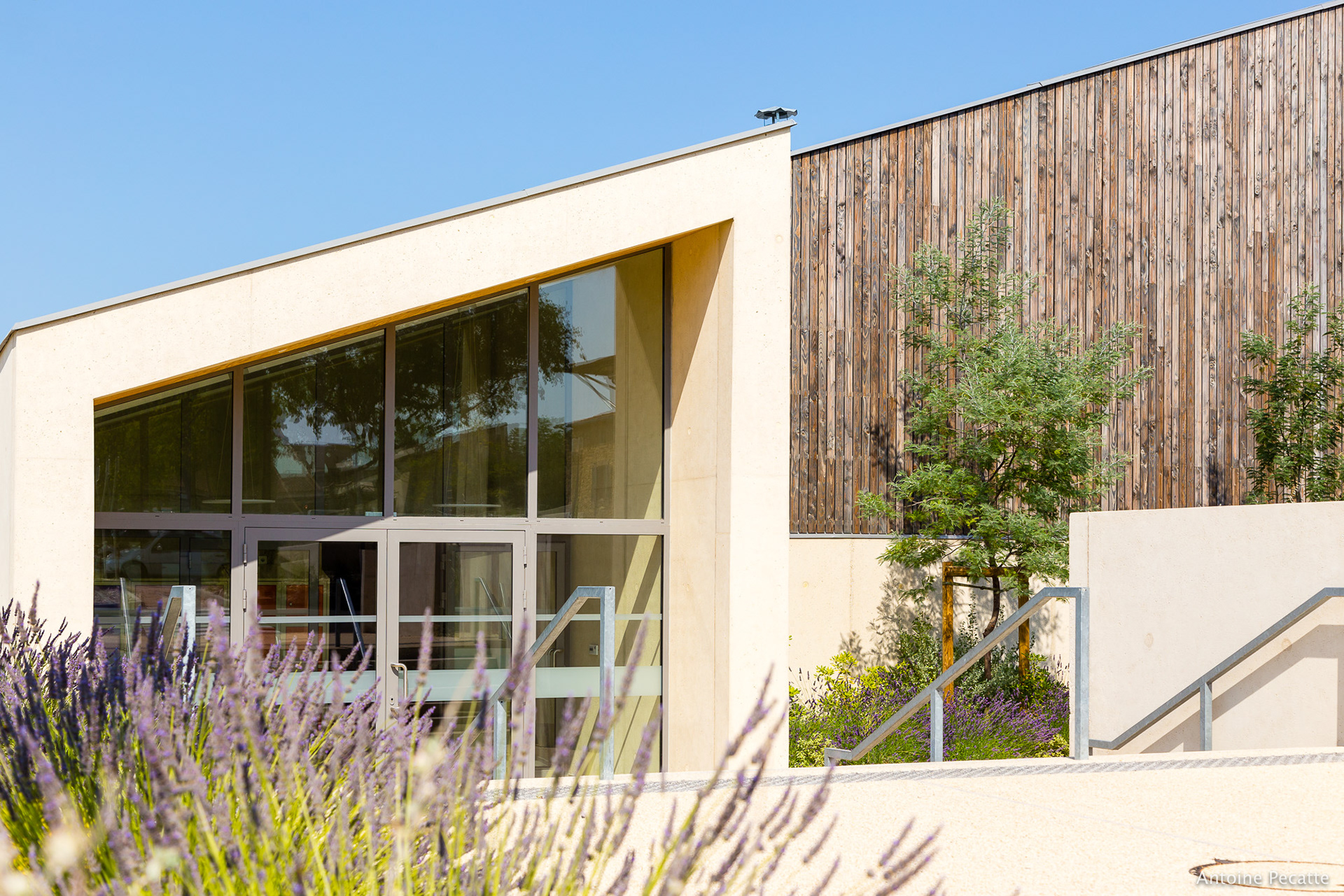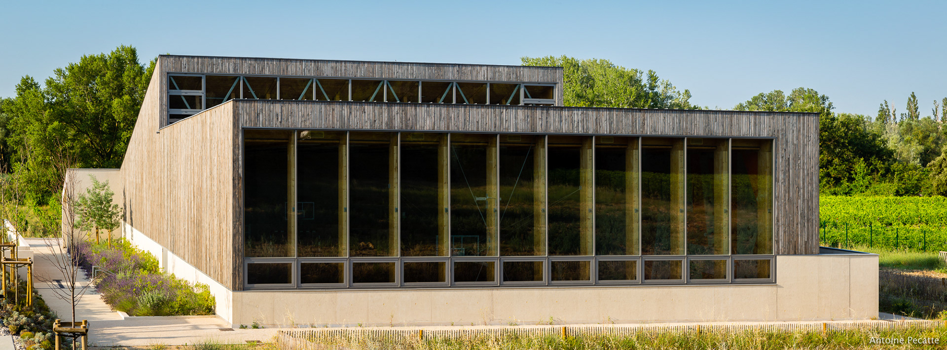 Série d'images réalisée pour l'agence Leteissier-Corriol, sur la création du gymnase et de la salle d'oenologie du lycée vitivinicole d'Orange, 2019.